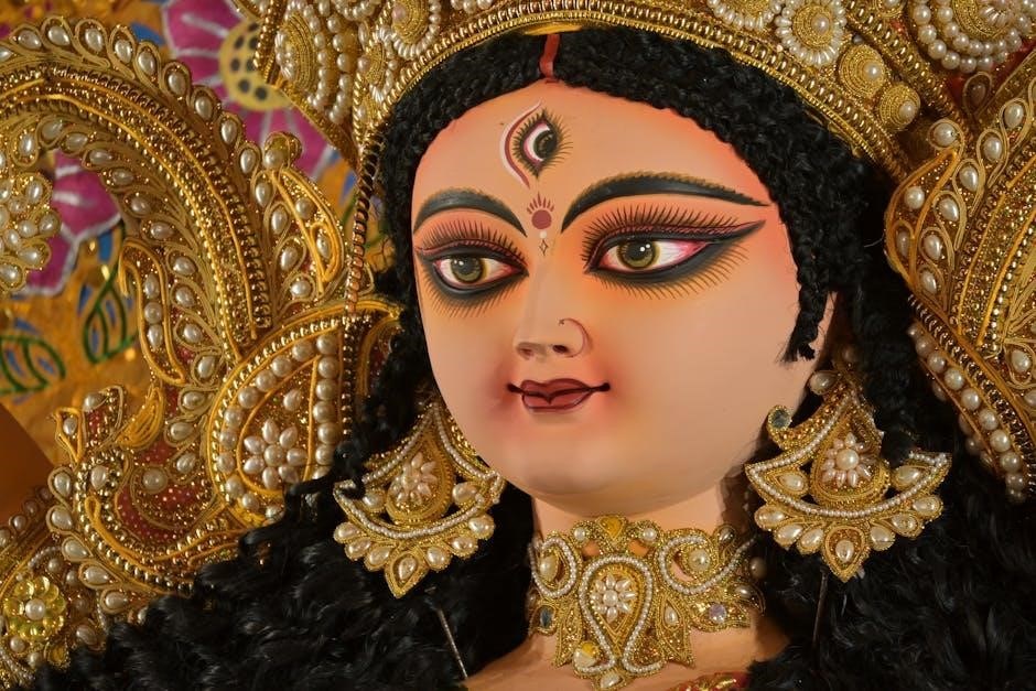 The Durga Ashtothram’s origins are deeply rooted in ancient Hindu scriptures, primarily the Devi Mahatmyam, a significant text within the Markandeya Purana. This scripture details the Goddess Durga’s victories over demonic forces, establishing her as a symbol of divine power.